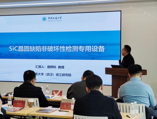 材化学院副院长周成冈以“储能与环境领域中一些关键材料的设计与应用”为题,材化学院教授、浙江研究院院长田熙科以“半导体SIC晶圆缺陷检测专用设备”为题,材化学院副教授葛文以“锂电池、电子就锂电池、电子封装、资源及固废利用”为题,分别进行学术研究分享交流。