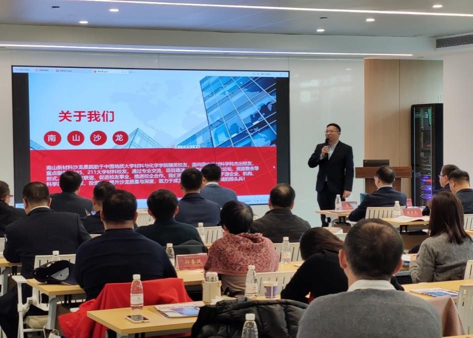 材化学院领导和青浦区徐泾镇领导先后致辞。材化学院党委书记梁本哲谈及了对上海发展变化及会前调研走访的感受,表达了对地大校友们支持母校发展的感谢以及对南山新材料沙龙的殷切希望和美好祝愿,期待与上海校政企建立合作,共同推动行业发展。