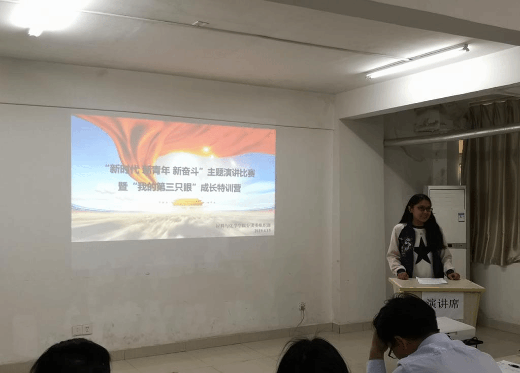比赛刚开始时,首先有来自031175的选手张健茹同学,自豪地引用了新中国成立以来所取得巨大成就的例子,又结合改革开放、脱贫攻坚战的当下政策,并在最后抒发了自己要为国出力的志向。