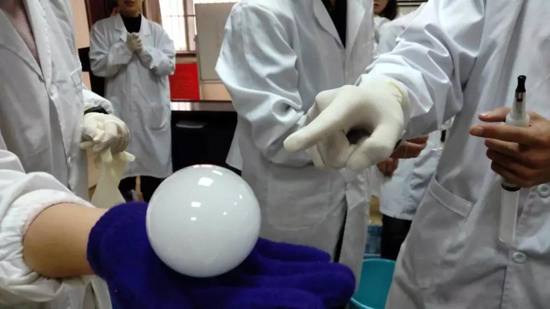 牛奶和椰子油在烧杯中加热后变成液体,注入塑形模具后冷却,“DIY牛奶香皂”大功告成。