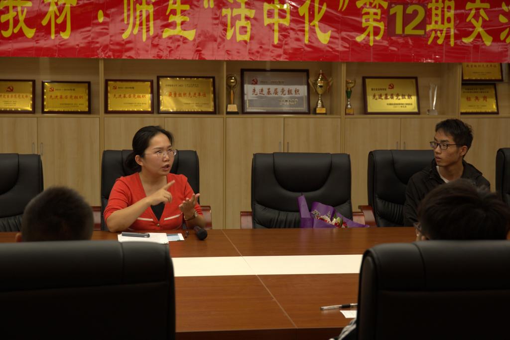 交流环节中,许象然、杨培杰同学分别就“稀土工业与本专业的就业关系和长途发展”和“我国稀土行业现如今的发展水平”进行了提问,分别得到了戴老师的详实解答。