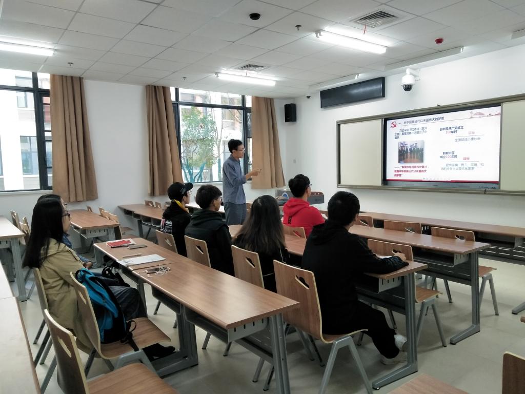 “中国梦是中国人民共同的思想追求和目标,是中华民族近代以来最伟大的梦想,在不同的时代有着不同的体现,从反抗外来侵略者的站起来,再到现在的富起来,中国共产党一直带领着广大人民不断探索,谋求发展,直到中华民族强起来。”副院长李国岗从中国梦切入主题,他以手机的更新换代为例向同学们展示了技术的进步及国家的发展。