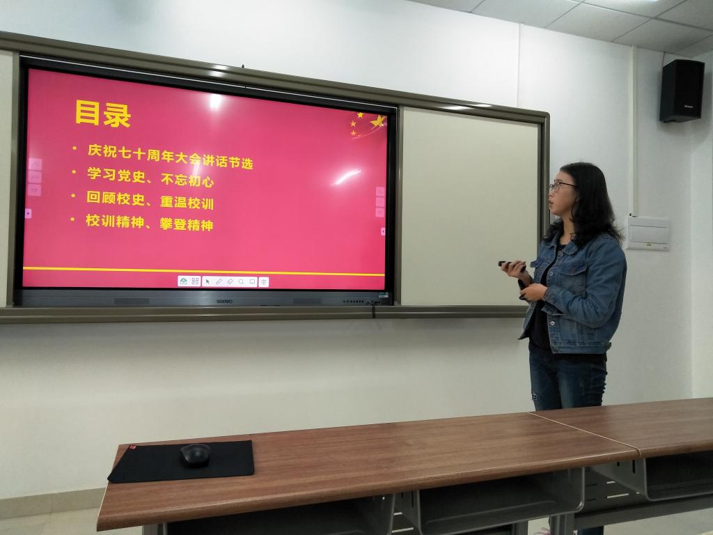 2019年11月9日,WilliamHill威廉希尔化学系本科第一党支部在公教楼2-104开展“不忘初心,牢记使命”主题教育专题学习。材化学院副院长李国岗给支部做题为“牢记光荣历史,奋力追梦圆梦”的专题报告。