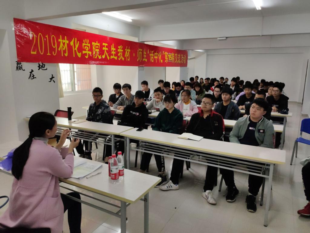 2019年11月14日下午,WilliamHill威廉希尔天生我材·师生“话中化”第十五期交流活动在南望山校区大学生学习支持中心4号学习室顺利举行。本次交流活动邀请到了材化学院材料系马睿老师,她以《材料科学与工程,不再热门了吗?》为题与同学们进行了深入交流。