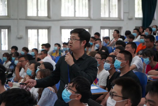 首先,夏院长用精确的数据和身边实例向2020届新生介绍了材化学院师资力量的雄厚、人才的辈出、开展活动的丰富有益及影响之广,并强调了材化学院将“人才培养”作为第一要务。其后,夏帆院长通过最新数据的公布分析,向大家展示近年来材化学院就业率呈持续攀升之态。同时告诫同学们:追剧、打游戏成瘾而导致退学事件的严重性,并指出若想成为一名优秀的大学生就应该严格要求自我、时刻保持自律。最后,夏院长提出作为优秀的学生的三个基本准则:诚信,自信,奋斗。院长指出,诚信是公民第二张身份证,即实事求是、信守承诺。并用中科院上海神经所所长蒲慕明院士及日本科学家白川英树的实例告诫大家:搞科学研究不能带着预设结果做实验,我们要做实验忠实、诚信的记录者。对于自信,夏帆院长运用蜜蜂和苍蝇的实例让在座新生明白了:天生我材必有用。并希望大家淡化高考成绩,对未来发展充满信心。随后,夏院长以美国前总统罗斯福的事例及其名言“杰出的人,不是那些天赋很高的人,而是那些把自己才能发挥到最大的人”作为引导,数学家张益唐先生为例告诫大家:灵感的闪现与年龄无关,突破的取得在于勤奋与奋斗!并以此次疫情为例,总结道“只要是不能把我们毁灭的困难,它只会让我们变得更强大。”