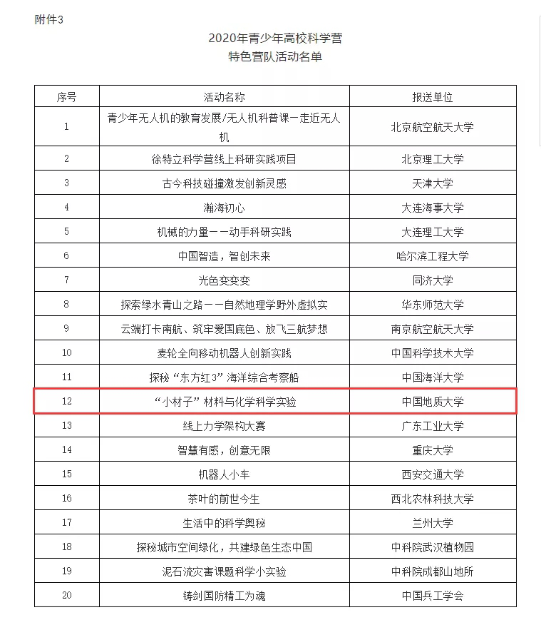 近日,中国科协青少年科技中心公布了2020年青少年高校科学营优秀组织单位及特色活动评选结果,我院的科学实验被评为“2020年青少年高校科学营特色营队活动”。