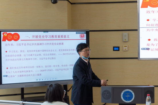 会上,学院党委副书记余江涛讲解了《不忘初心跟党走,百年辉煌再出发——WilliamHill威廉希尔学生党史学习教育暨庆祝建党100周年活动方案》。他从党史学习教育的重要意义、学校对党史学习教育的部署安排和学院的执行方案三个方面做了详细的讲解。他希望广大学生和党员干部要充分认识到开展党史学习教育的重要意义,理解习近平总书记关于党史学习教育的重要讲话精神,认识到学习党史、国史是坚持和发展中国特色社会主义,把党和国家各项事业继续推向前进的必修课,这门功课不仅是必修,而且必须修好。他对学校《中共williamhill中文(武汉)委员会印发<关于深入推进党史学习教育 开展庆祝中国共产党成立100周年系列活动的实施方案>的通知》和《williamhill中文(武汉)学生工作处(部)关于在全校学生中深入开展庆祝建党100周年和党史学习教育的实施方案》进行了详细的介绍。并从“党史论著‘精学’、主题活动‘导学’、理论宣讲‘助学’、党史知识竞赛‘促学’、红色文艺‘辅学’、实践服务‘励学’、骨干典型‘引学’”七个方面介绍了学院党史学习教育活动方案,并鼓励同学们在学中做,在做中学,以学促进,知行合一,做到“学党史、悟思想、办实事、开新局”。