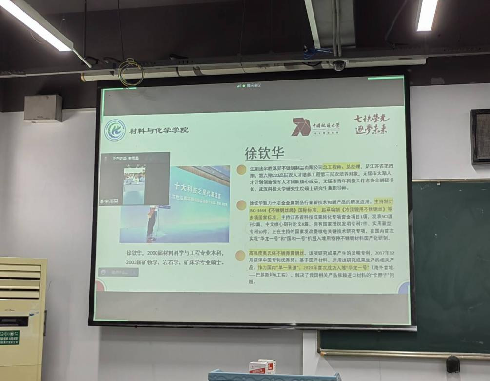 11月10日下午,我院2000届优秀校友,江阴法尔胜泓昇不锈钢制品有限公司总工程师、总经理,武汉科技大学研究生学院硕士研究生兼职导师徐钦华先生为同学们做分享。