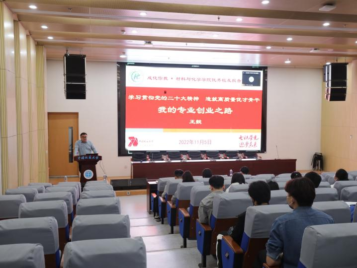 11月5日下午,我院2006届优秀校友王懿学长从自身经历讲起,结合自己的工作经验对大家进行了专业指导,强调了知识在专业发展中的重要性,有了知识的根基,才能步履铿锵地行走在创业的道路上。王懿学长还鼓励大家共同创业,寻求企业合作,做富有智慧的创业人。同时王懿学长对同学们的提问也进行了细致的解答,鼓励更多的年轻人加入材料领域,共同解决国家发展中遇到的难题。
