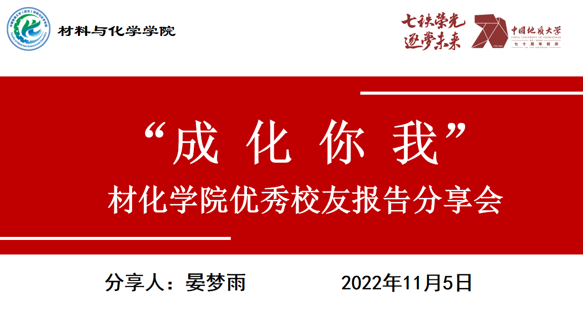 2022年11月7日,williamhill中文(武汉)迎来了70周年校庆,为了保证校庆活动的顺利进行,展现七秩地大的风采与荣光,材化学院全院师生有条不紊的筹备了校庆的系列工作。与此同时,材化校友们心系母校、回归母校,为母校送上最真挚的祝福。
