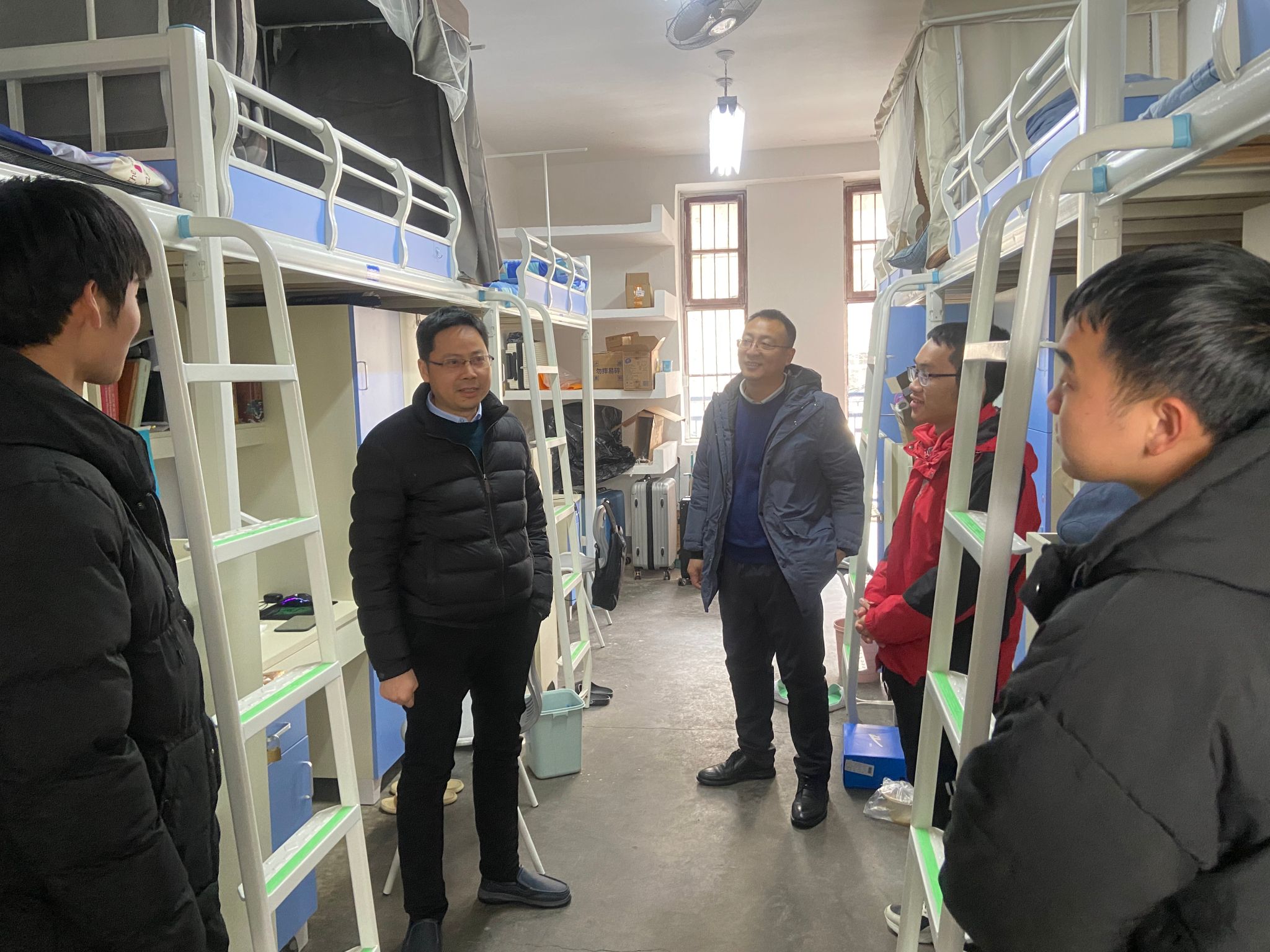 2月25日下午,学院党委书记梁本哲、院长胡兆初、副院长周成冈、靳洪允、朱振利,党委副书记白振洋,教师代表及学工组辅导员等,分头深入两校区学生宿舍走访,向同学们送上新学期问候和关怀。
