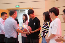 院系领导给各班分发体育用品,鼓励大家学习之余加强体育锻炼,促进自身全面发展,同时增强班级活力与凝聚力。