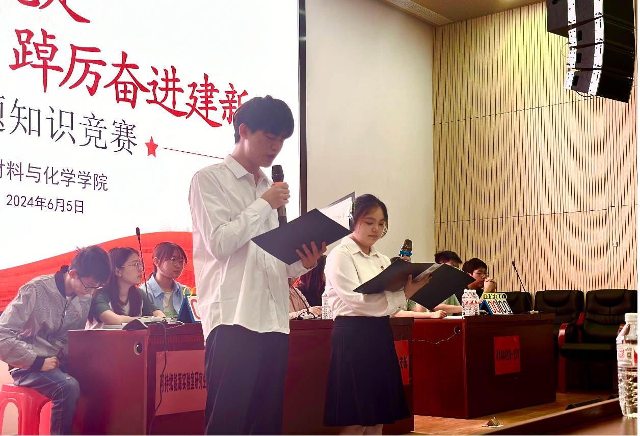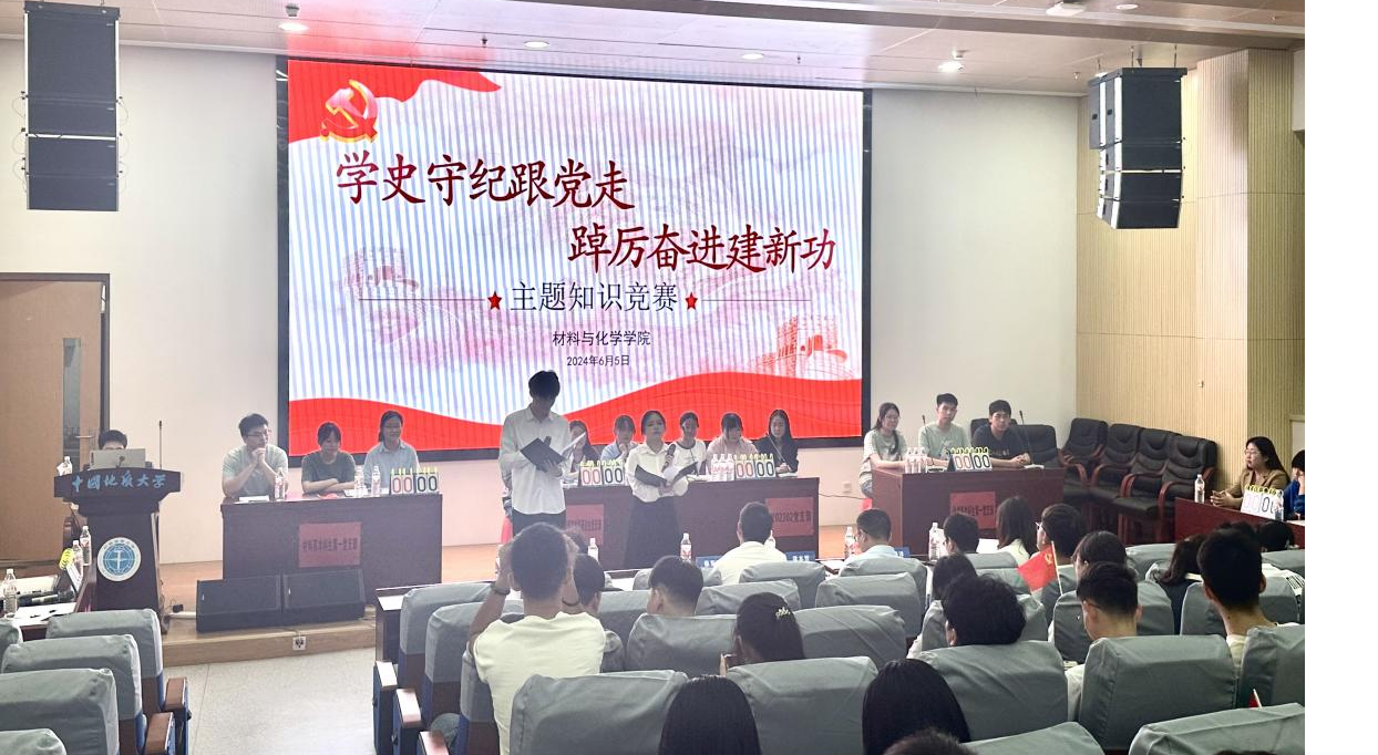 为深入学习贯彻习近平新时代中国特色社会主义思想,认真学习《中国共产党纪律处分条例》,引导学生党员扎实学习党史党纪,明确责任担当,守牢纪律红线,进一步激发爱国情、报国志,2024年6月5日,学院在科五楼110报告厅举办“学史守纪跟党走,踔厉奋进建新功”党史党纪知识竞赛暨红色故事分享会。学院党委书记梁本哲,党委副书记、纪委书记白振洋,辅导员张丽琪、侯亚飞及各学生党支部党员、入党积极分子等现场参加竞赛。竞赛由学院党建办公室成员雷彤和王祺锴主持。