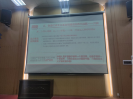 黄书记从“北伐战争、土地革命战争、抗日战争、解放战争”四个重要时期介绍了“救国”阶段——即新民主主义革命时期的伟大成就。从北伐战争到新中国成立,黄书记详细地向同学们介绍了中国共产党在这一时期的主要革命行动和重大的会议,以及中国共产党艰辛探索的道路上,出现的许多可歌可泣的人物和事迹,同学们通过历史的学习进一步了解了中国共产党从摸索走向成熟的历程。