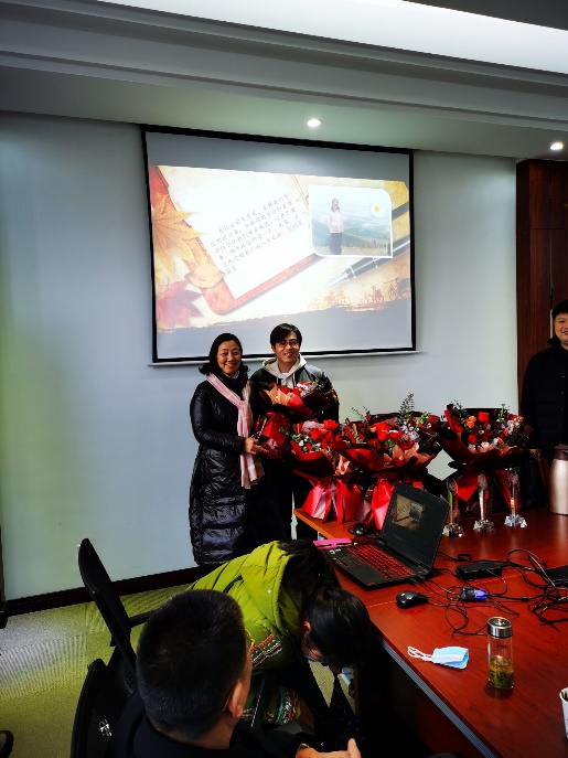 院工会精心制作的6段VCR在大屏幕上逐一展示这6位老师从青春飞扬到持重练达的芳华之旅,他们在各自的岗位上兢兢业业,认真工作,为材化学院的发展做出了杰出贡献!材料系、化学系及实验中心领导给他们颁奖并送上了真挚的祝福!