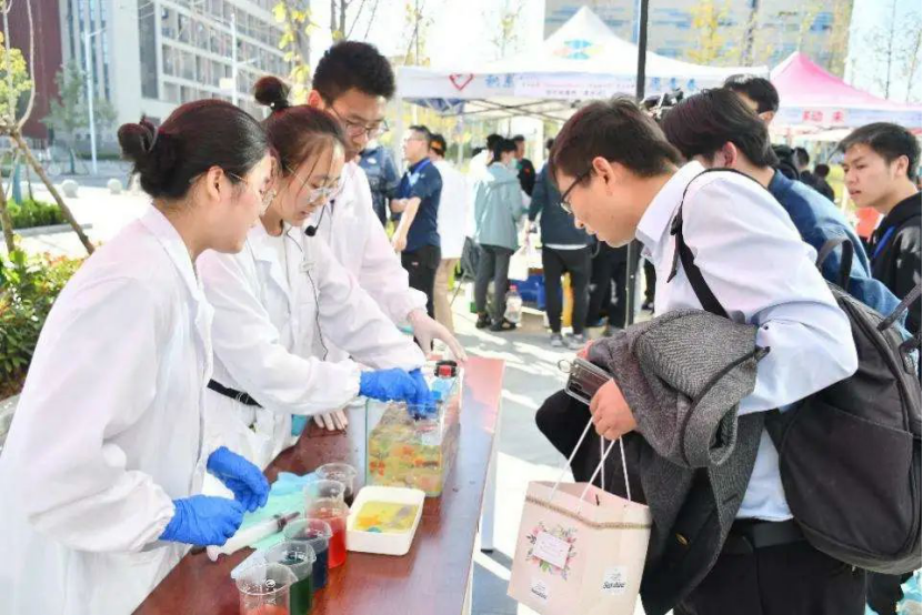 开幕式现场,“水晶滴胶”展演团队冯茜莹代表展演团队从“敢于尝试,学会坚持,时间管理”三个方面分享了此次展演带给她的收获。而031205班赵欣雨作为新生代表表达了对本次活动的期待,她表示“‘身边的化学’是一次奇妙的化学之旅,传承着化学的智慧”。