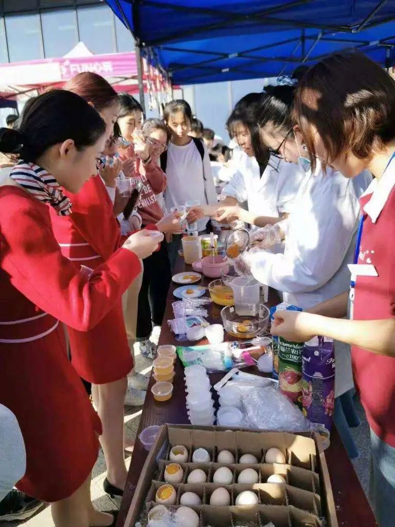 在“分子料理”展演台前,不少观众还在为哪个是真鸡蛋争论不休,原来鸡蛋也可以人造,团队成员利用分子料理中最著名的球化技术,通过卵磷脂和钙盐的化学反应,制作出了类似于鸡蛋黄口感和外形的假鸡蛋。