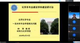 我院化学学科与专业建设,今后如何精准发力?2020年6月19日,化学系全体教师、校内相关学科专家学者、学院领导、学生代表和校友代表,相聚云端,举行网络视频会议,围绕一流本科专业建设和化学博士点申报建言献策。