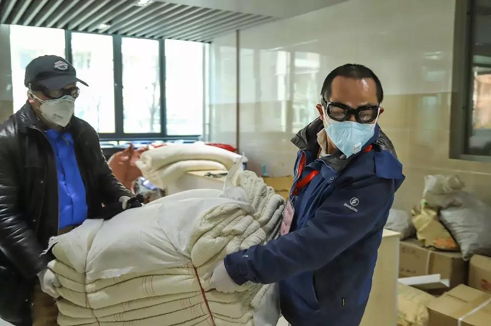 图为聂玉伦老师在未来城校区为援鄂医护工作人员入驻做准备工作