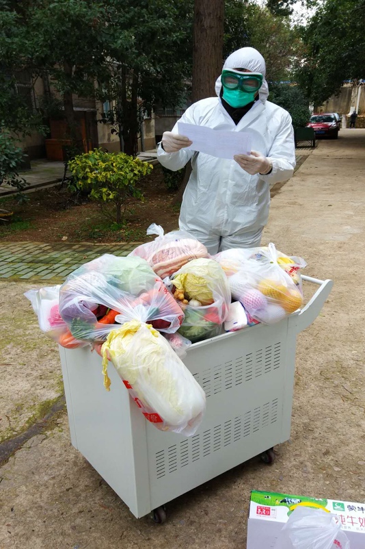 李国岗是学院副院长,也是化学系第一党支部的一名党员。1月25日他就报名参加了学院的应急值班队伍,后来学校封控应急任务需要工作人员,他又主动要求加入了学校的封控应急队。2月17日,封控应急工作正式启动。配送生活物资,清理生活垃圾,代取防护物资快递,帮患有慢性病的老人代取校医院药品,帮助住户充值水、电、天然气,从早到晚,李国岗每天都要完成这些繁杂琐碎的工作。特殊时期,住户的物资需求量非常大,20多家住户的物资就装了三车半,足足有七八百斤重。当李国岗用一下午的时间把这些物资配送完毕后,内层衣服都湿透了。“因为防护服不透气,”他笑称感觉就像“蒸桑拿”。当李国岗完成了第二期封控应急任务,眼看工作告一段落能够喘口气休息的时候,他却又报名了第三期。“本来说歇歇的,但学校工作人员还是很紧张,所以今天我又跟我爱人商量,想继续参加第三期。她就说了一句‘你放心去吧,家里有我。’我特别感谢我爱人的理解和支持。”实际上,李国岗家中两个孩子,一个10岁,一个才两岁,没有老人帮衬,家里全靠妻子一人操持。“别看我在一线工作辛苦,其实我爱人在家里并不轻松,两个孩子鸡飞狗跳的,我觉得她比我更累。”李国岗的眼神流露出一丝对妻子的歉疚。作为领导干部,在这场没有硝烟的战争中他始终走在前、干在先、做表率,这股挺身而出的勇气从何而来?对此他笑着说:“这辈子当不了兵打不了仗,这个时候再不站出来就没有效力的机会了。”在谈及自己参加封控应急的感受时,他说得最多的却是“惭愧”二字,“跟一线医护人员和民警没法比,我只能尽力做点自己力所能及的事情。”