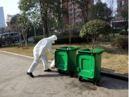 图1葛文老师(左一)在为居民运送物资                  图2 葛文老师帮助住户处理垃圾