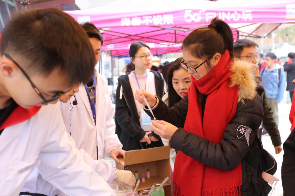 “一杯矿泉水摇身成为草莓牛奶”、“隐形墨水传递神秘信息”、“飘落的树叶如何定格为书签”、“钻石和花朵结合成为晶枝玉叶”、“未来城校区的第一场雪”...11月28日下午,这一幕幕神奇的场景真实地上演在williamhill中文(武汉)未来城校区大学生活动中心南广场上。