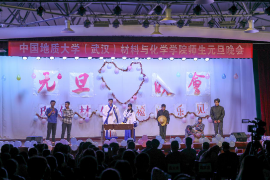 (通讯员:吕沛珊、白振洋)2018年12月21日晚,学院“玖伴材化,禧闻乐见”主题元旦晚会在大学生活动中心二楼成功举办数理学院党委书记(原材化学院党委书记)吴太山、学院党委书记黄菊、副院长公衍生、工会主席杨祥、院长助理曹菱,学务指导老师王君霞、靳洪允,学院办公室主任李晓晔,2018年新晋教师和学工组相关老师以及300余名本科生、研究生观看了此次元旦晚会。