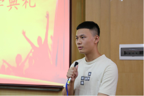 新生代表材料一班曾泓瑞发言。他讲述了自己来到地大之后地所见所闻,表达了对老师、学长学姐入学以来对新生们细致入微关怀的感谢,表示自己在将来四年的大学生活中要充分利用学校资源,不断努力、钻研进取,做一名优秀的材化人。