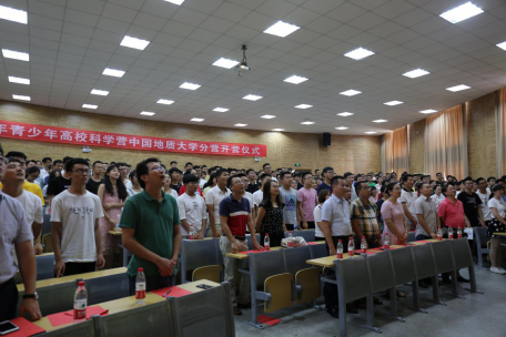 全体奏唱地大校歌《勘探队员之歌》,2018级新生开学典礼圆满结束。
