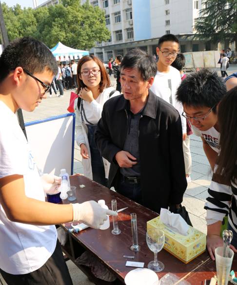 (通讯员:白振洋、梁雪莹)11月2号下午,秋高气爽,阳光明媚,williamhill中文(武汉)第十二届“Chemistry Show-身边的化学”实验展演在主楼前拉开帷幕。本次展演主题为“创新成就美好生活”。校党委宣传部部长喻芒清、学生工作处处长王林清、教务处副处长吕占峰、实验室与设备管理处副处长段平忠、校团委游萌,院党委书记吴太山、党委副书记黄金波、副院长周俊、院长助理、实验教学中心主任公衍生、各团队指导老师及学工组全体老师应邀出席开幕式。17级285余名本科生及附属小学100余名中小学生参加此次展演活动。展演开幕式由院学生会主席韩冰主持。