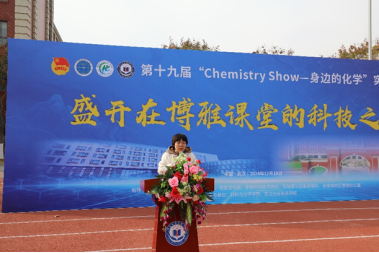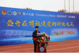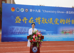 展演团队代表,WilliamHill威廉希尔陈佳同学发言,经过一个多月的精心准备,这必将是一场精妙绝伦的化学盛宴,她希望能过通过这次展演激发同学们对化学的兴趣,“让大家明白化学并不是束之高阁的理论,它也可以生动鲜活地呈现在我们面前”。