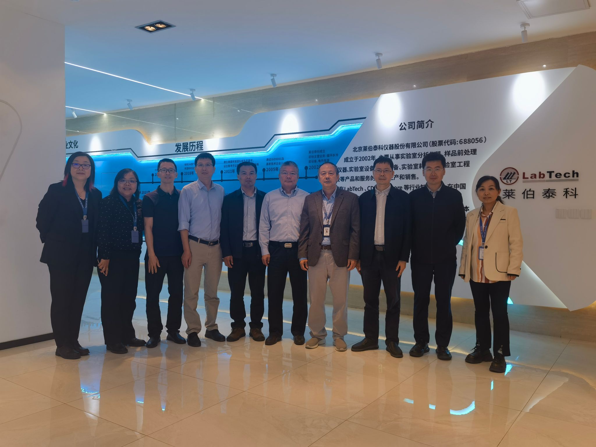 在北京莱伯泰科仪器股份有限公司,胡兆初一行分别与北京莱伯泰科仪器股份有限公司董事长胡克,副总经理丁良诚等举行座谈交流。