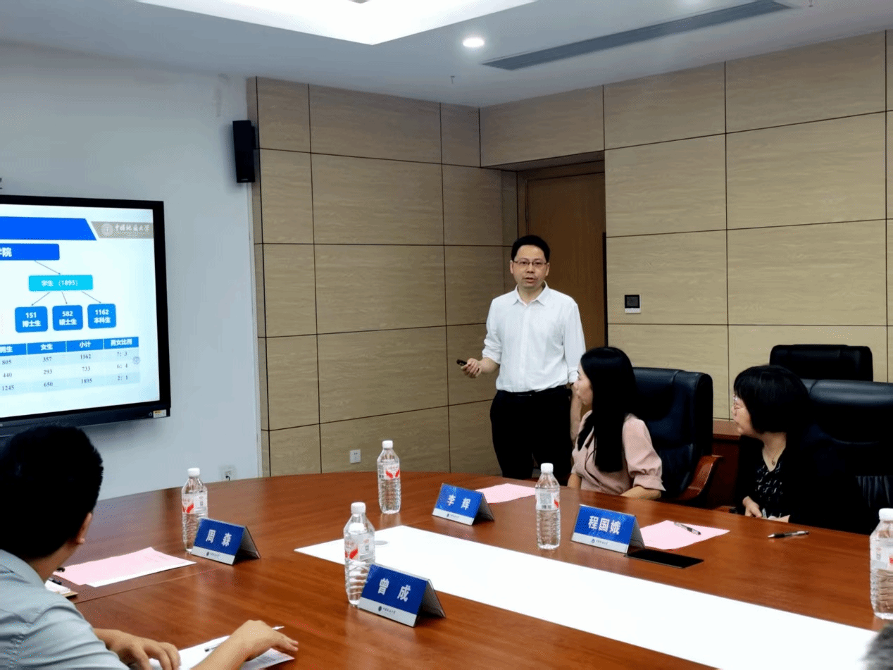院长胡兆初详细汇报了学院近年来事业建设发展情况,重点报告了今年以来人才培养、学科建设、科技创新、对外合作等方面工作进展及“十五五”谋划思考。