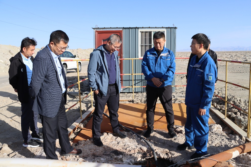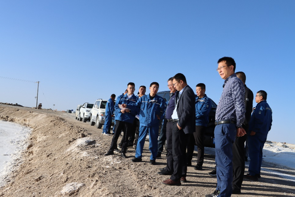 在青海恒域丰盐业产业(集团)有限公司调研期间,青海省茫崖市委副书记、市长刘为民及市领导班子成员、相关部门负责人,青海恒域丰盐业产业(集团)有限公司董事长徐东、总经理刘子坤及相关部门负责人陪同走访公司盐田、U型采卤井、钾肥车间等,详细了解矿区资源赋存情况、开发利用现状、存在困难及发展规划等。
