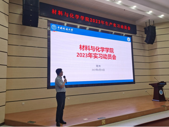 首先,周炜副院长做实习总动员,他首先强调实习期间,需把安全放在第一位,并向同学们提出了十点要求,一是要遵纪守法,既要遵守国家法律法规,同时也要遵守学校规章制度和实习企业相关要求,时刻谨记学校的十六字方针,做“品德高尚,基础厚实,专业精深,知行合一”的地大代言人;二是要服从安排,不仅要服从实习指导老师的安排,也要服从单位领导的安排;三是注意饮食卫生,提防高温来袭,注意季节性疾病和食物中毒,若发生疾病应到正规医院就诊;四是注意财产安全,妥善保管好自己的证件和财产,遇到紧急情况第一时间报告实习老师或报警;五是注意交通安全,确保实习场地和住宿场地往返路线上的人身安全和财产安全;六是注意防骗,实习往返途中和实习期间尽量不要跟陌生人交往,不向陌生人透露自己的情况和信息;七是警惕任何形式的传销组织;八是注意暑期学校住宿安全,严格遵守学校宿舍管理制度,合理用电,严防火灾和盗窃事件的发生;九是注意防火,不乱接电源,不违章使用电器;十是禁止下水游泳,实习期间严禁到非游泳区游泳。同时,周院长也提出了一些其他的注意事项,如实习期间定时与家人联络,与实习指导老师加强联系,主动与辅导员汇报实习情况等;最后周院长也预祝大家的实习锻炼能够圆满完成,安全返校!